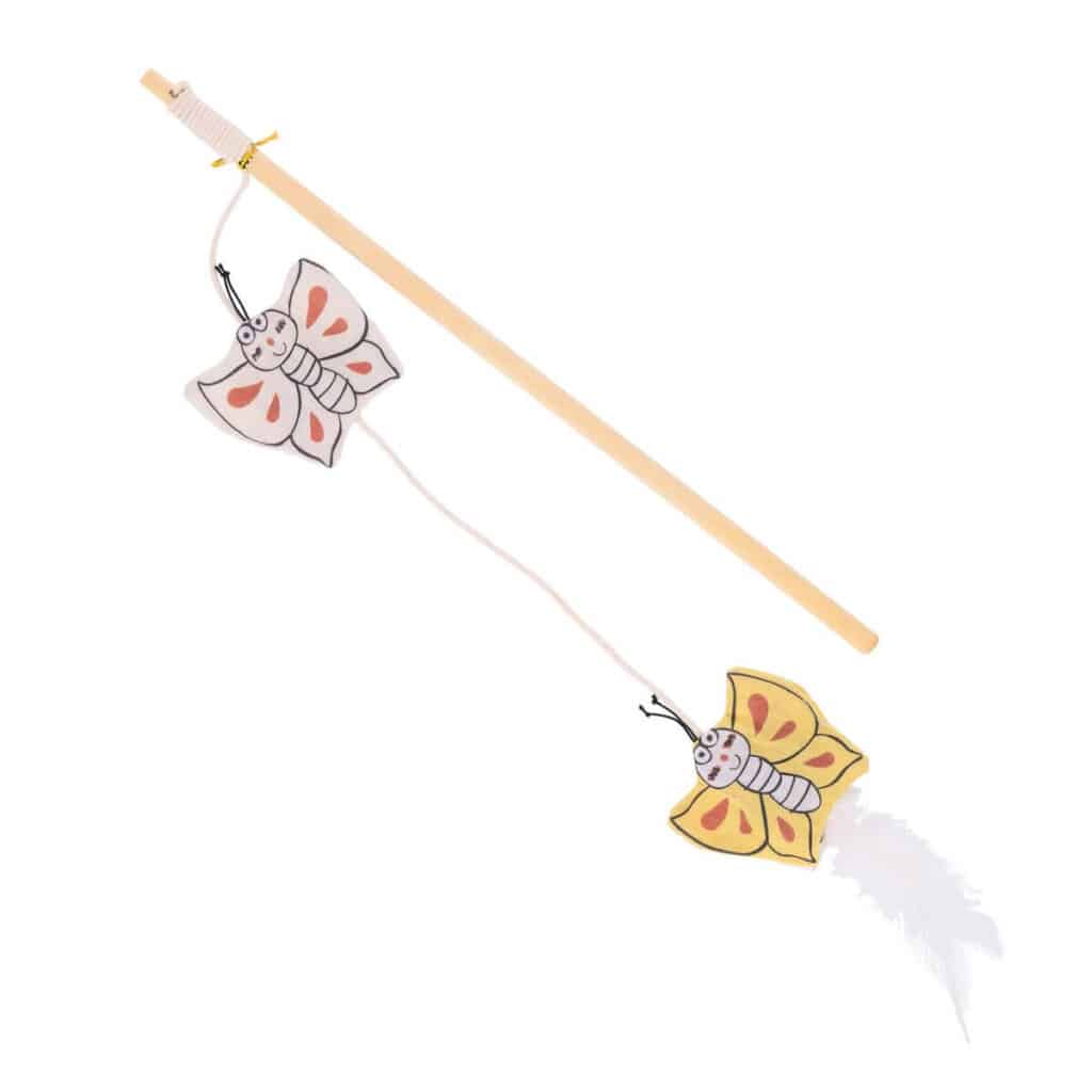 La Butterflies Wand, canne à pêche pour chats, offre beaucoup de plaisir pour l’homme et l’animal. Avec son design amusant, ses plumes et la combinaison de cataire et de Silvervine, elle devient un jouet irrésistible. Le chat est attiré par l’odeur et fasciné par les souris et les plumes qui se balancent. Idéale pour éveiller les instincts de chasse du chat et offrir des moments de jeu interactifs, qui sont divertissants pour le chat ainsi que pour le propriétaire.