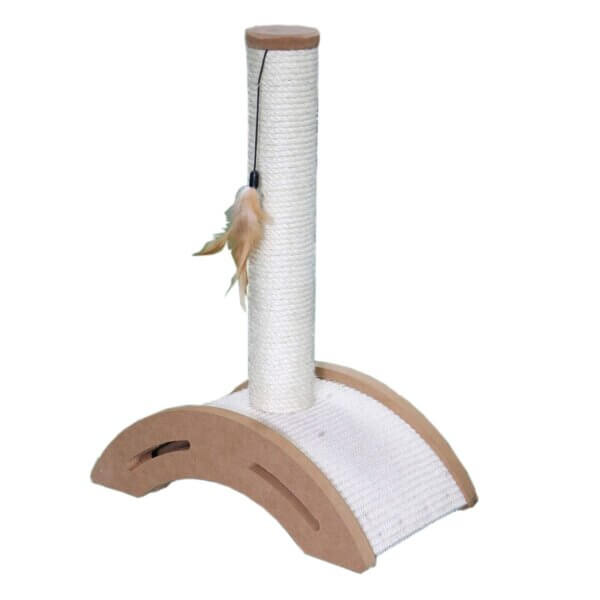 Les chats ont instinctivement besoin d’aiguiser leurs griffes. Ils ont besoin de leurs griffes non seulement pour chasser, mais aussi pour grimper et jouer. La colonne à griffer avec jouet Gunnar de Petrebels offre au chat la possibilité d’aiguiser ses griffes et l’incite à jouer grâce au jouet en plumes fixé à la colonne. Outre la colonne de sisal, le fond en forme de pont est également idéal pour faire ses griffes.